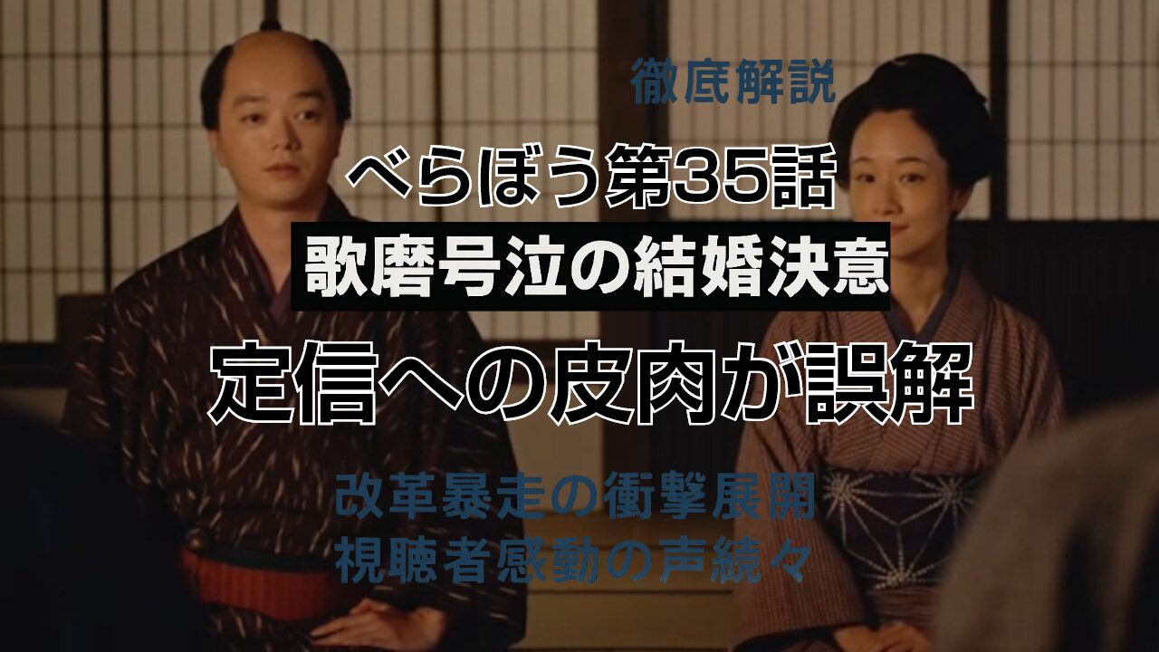 【大河べらぼう】第35話で歌麿が幸せの門出!定信勘違いで改革加速・黄表紙の皮肉が招く大波乱を考察