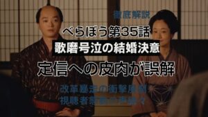「べらぼう」第36話は、演出と脚本の両面で非常に優れた作品でした。特に、ナレ死という手法と歴史的背景の現代的解釈が印象的でした。