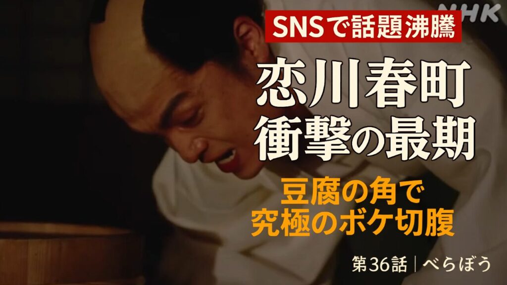 - 恋川春町の壮絶な最期: 豆腐の角で切腹という究極のギャグで、戯作者としての誇りを最後まで貫いた感動的なシーン
