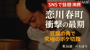 - 春町の死が蔦重を変えた: 「倹約くそくらえ!」という叫びは、蔦重が春町の意志を継ぎながらも、より過激な道を選ぶ覚悟を示した象徴的な場面でした。横浜流星の鬼気迫る演技が視聴者の心を掴みました。